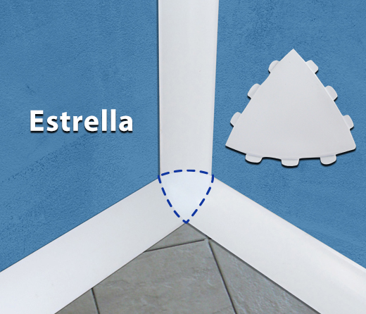 -Accesorio Esquinero Interno para mediacaña de 6 y 9 cms -Accesorio Estrella mediacaña de 6 y 9 cms -Accesorio Esquinero Externo para mediacaña de 6 y 9 cms -Accesorio Tapa para mediacaña de 6 y 9 cms