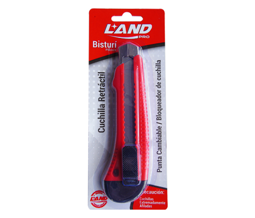 Bisturí de mango plástico, cuchilla retractil con punta cambiable.