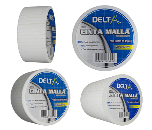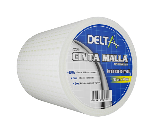 Cinta malla en fibra de vidrio recomendada para uniones drywall, compuesta de fibra de vidrio autoadhesiva en forma de cuadricula, se utiliza para el tratamiento de pequeñas reparaciones de juntas de placas de yeso, estuco, ladrillo adémas de tratamiento de juntas en muros con placas de cemento, fibrocemento en interiores y exteriores.