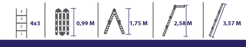 - Bisagras: Cuenta Con 4 bisagras fabricadas en acero que facilitan el acople de la escalera en diferentes posiciones.
