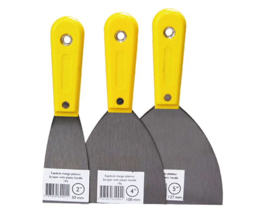 Fabricadas en acero al carbono, templado, mayor durabilidad, resistente a la flexión, se utiliza principalmente para trabajos de pintura como: Relleno de grietas y agujeros, preparación de mezclas y raspado de superficies, También se utiliza para trabajos en fontanería y albañilería, se recomienda no ser usadas en manipulación de alimentos.