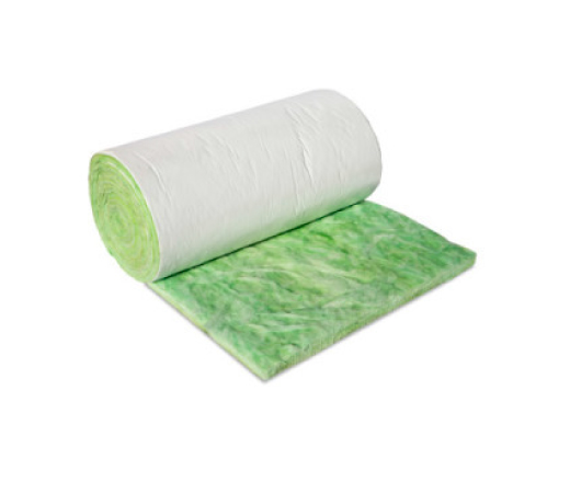 Aislamiento térmico y acústico en forma de rollos flexibles de lana de vidrio, laminados con una película blanca PRK (polypropilene reinforced kraft), que actúa como una barrera de vapor, proporciona un acabado estético de alta reflectividad lumínica, resistencia al abuso y control de la humedad.
