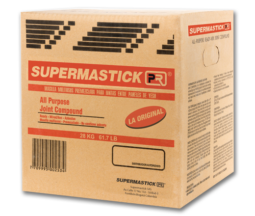 La masilla multiusos SUPERMASTICK es un compuesto vinílico premezclado, para colocar cintas para juntas y capas de relleno y acabado, así como usos en paneles interiores de yeso. También para cubrir cantonera de esquina (esquinero), tornillos, contramarcos, y para la última capa de superficies enteras de paneles de yeso y para aplicar texturas sencillas