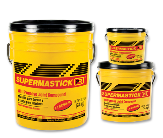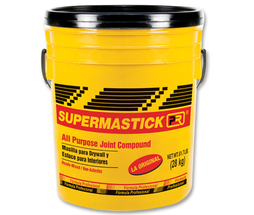 La masilla multiusos SUPERMASTICK es un compuesto vinílico premezclado, para colocar cintas para juntas y capas de relleno y acabado, así como usos en paneles interiores de yeso. También para cubrir cantonera de esquina (esquinero), tornillos, contramarcos, y para la última capa de superficies enteras de paneles de yeso y para aplicar texturas sencillas