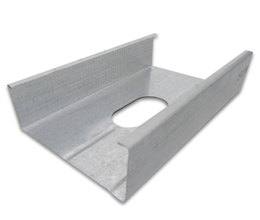 Perfil utilizado en la fabricación de muros interiores y fachadas, se instala verticalmente como columna principal para ser atornillado y servir de soporte de la estructura, teniendo como objetivo sostener la lámina de panel yeso ó fibrocementro.