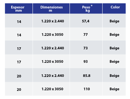 SUPERBOARD ENTREPISOS ALTA RESISTENCIA DE 14, 17 Y 20 MM