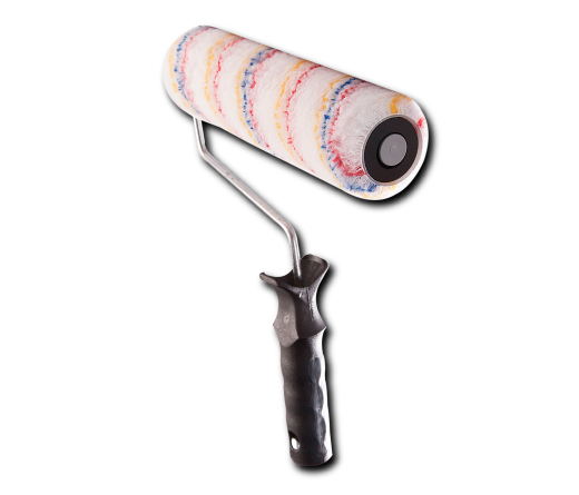 Rodillo termofusionado, sobre tubo de polipropileno resistente a todo tipo de solventes. felpa antigota woven de alta densidad, 12mm de altura, excelente cubrimiento en una sola mano, acabados muy finos, no suelta fibras, sistema recambiable, mango ergonómico y varilla resistente galvanizada de 6mm de diámetro.